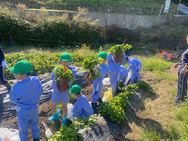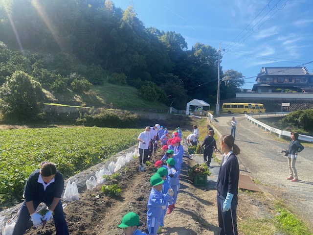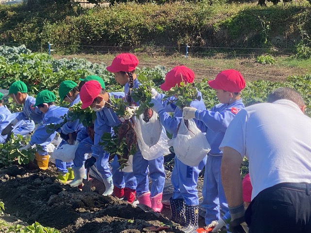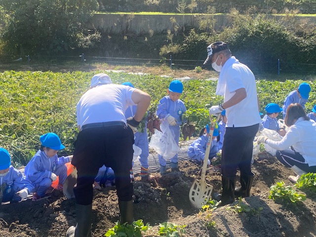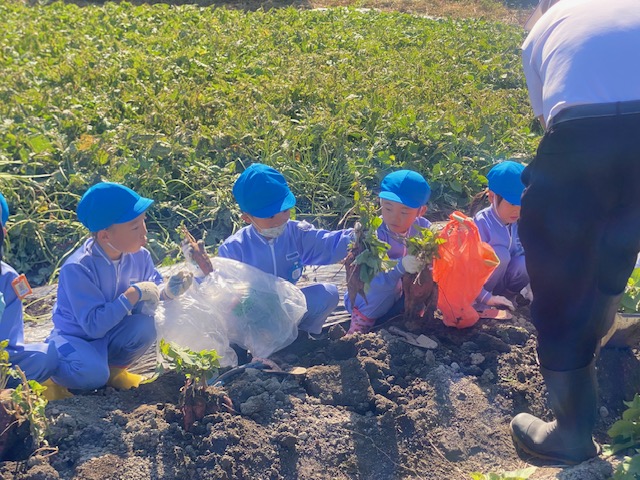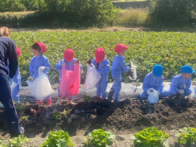 2025.10.30 さつまいもほり(年長組) お天気にも恵まれ、子ども達が楽しみにしていた「さつまいもほり」に出かけました。 土の中から大きいおいもが見えると、子ども達は「わぁ!」と大喜び。 自分の力で掘り出したさつまいもを大切そうに抱える姿が印象的でした。 前の記事 記事一覧 次の記事