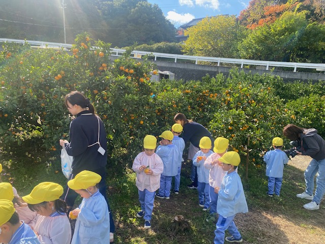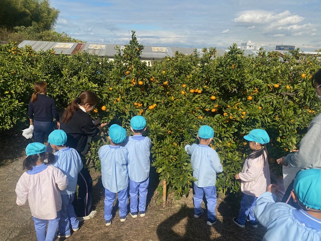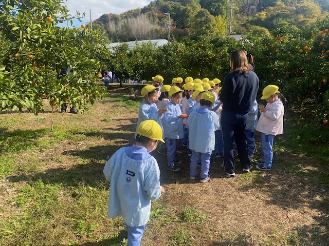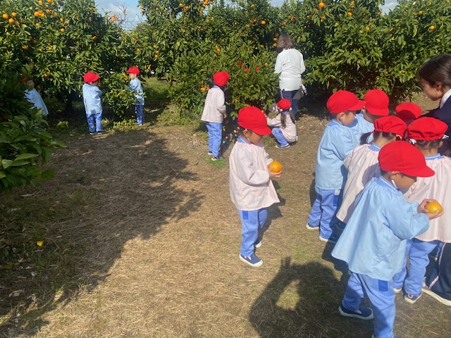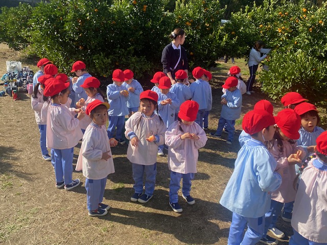 2025.11.19 みかん狩り(年中組) 年中組はみかん狩りに出かけました。 気温が低く心配されましたが、活動がはじまる頃には穏やかな日差しに恵まれ、ゆったりとみかん狩りを楽しむことができました。 子ども達は自分の手で収穫したみかんを嬉しそうに見せてくれました。 前の記事 記事一覧